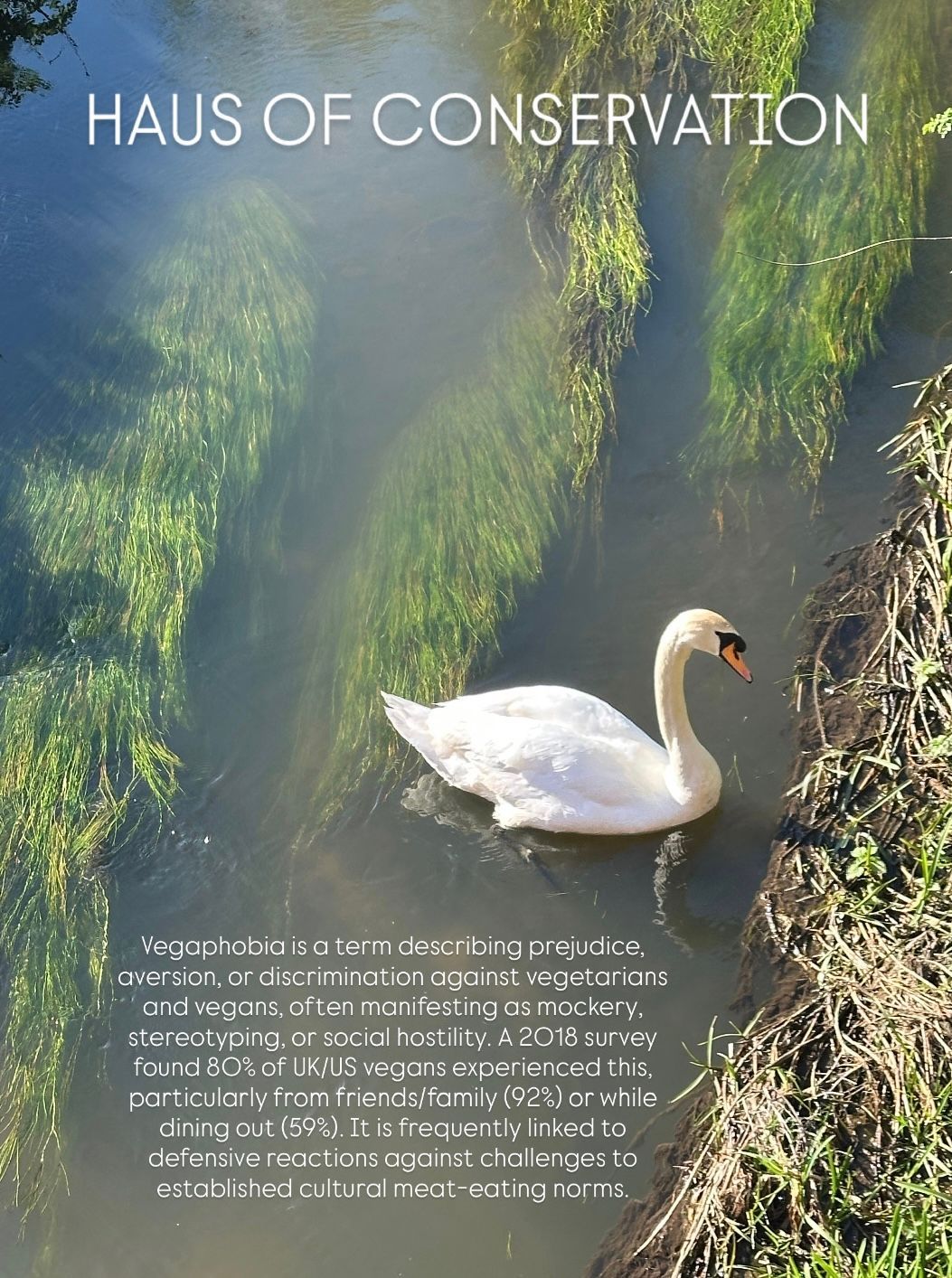 In 2020 I founded Haus of Conservation which brings my passion for wellbeing, creative arts and my advocacy work for humans, nonhuman animals and the earth together under one roof. My mission is to plant as many seeds as I can in a bid help people understand the differences between kindness, empathy, compassion and altruism as well as educating people on how all forms of oppression come from the same source of energy, and how this is connected with mind, body, soul wellbeing and regulation. I also aim to guide people to be conscious of their behaviour towards towards all, including nonhuman animals who are individuals, with their own personalities, thoughts, feelings and desires with awareness of the world around them. My motto "wellbeing for all life"... As the natural world